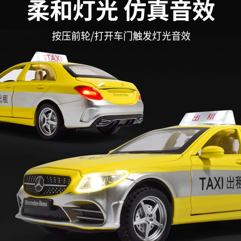 大号奔弛合金蓝出租车儿童玩具六开门汽车模型 士男孩玩具车礼物