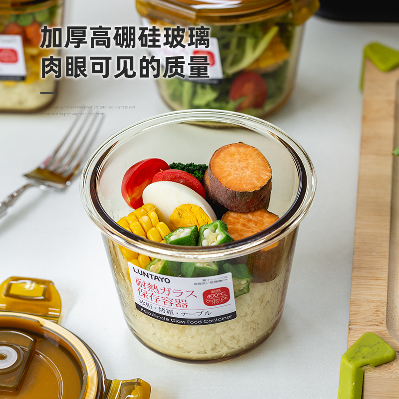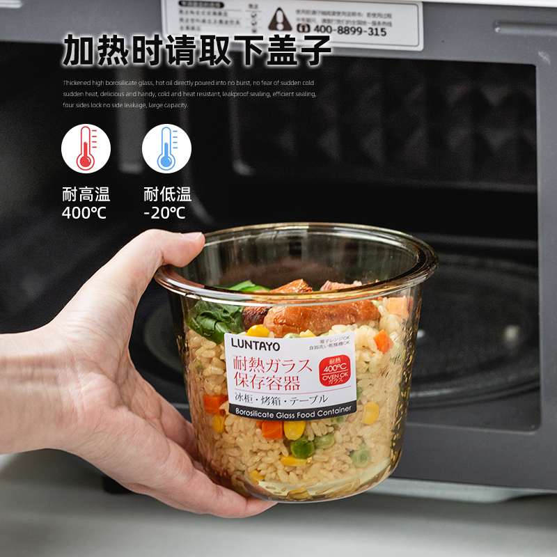 日本LUNTAYO饭盒上班族可微波炉加热大容量保鲜玻璃学生便当餐盒