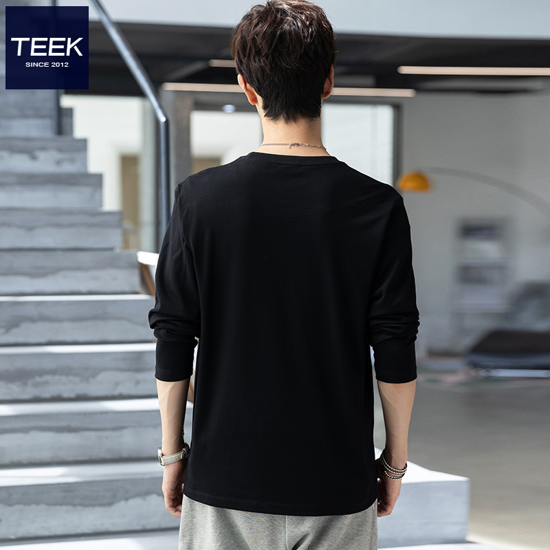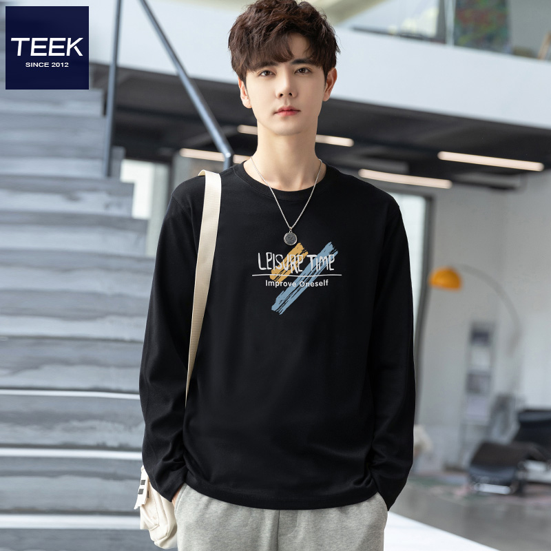 T恤ins潮牌美式 TEEK秋季 长袖 体恤2025新款 学生上衣服 圆领全棉男士