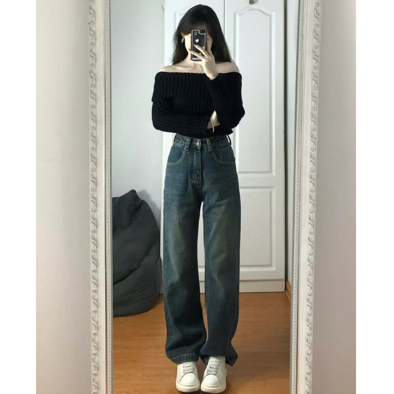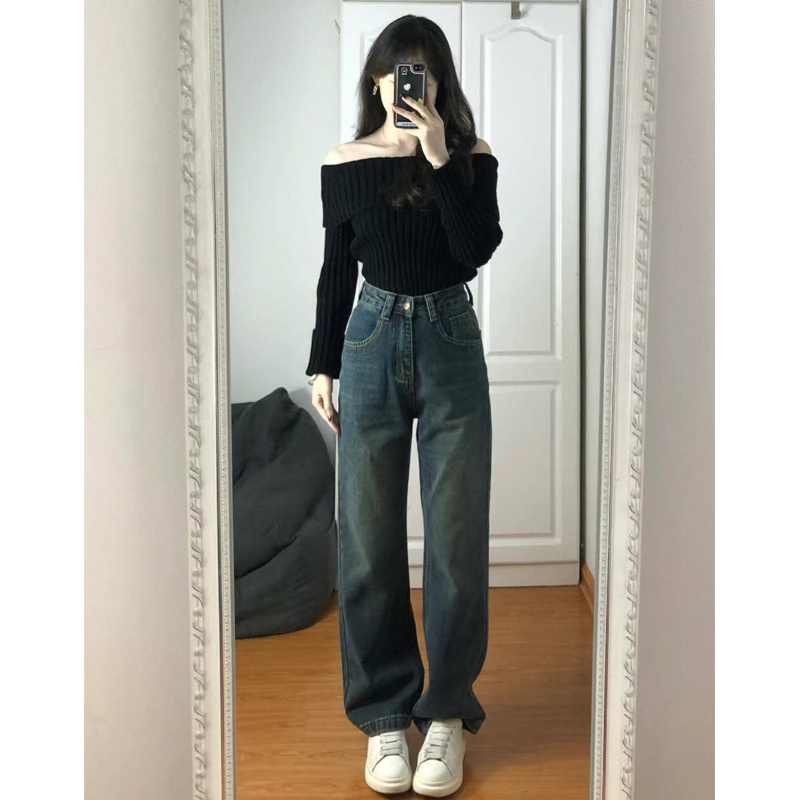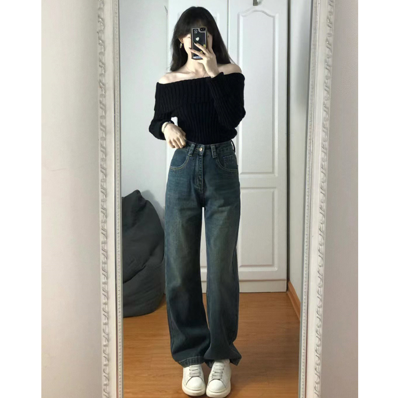上衣 打底针织衫 一字肩毛衣女秋冬洋气小众设计感露肩修身 显瘦长袖