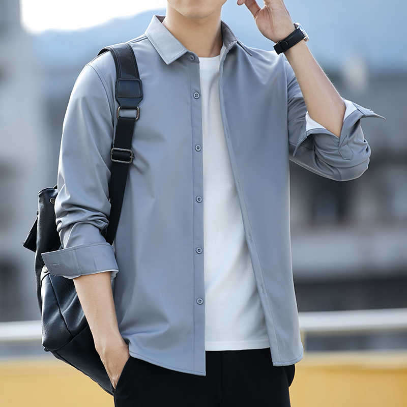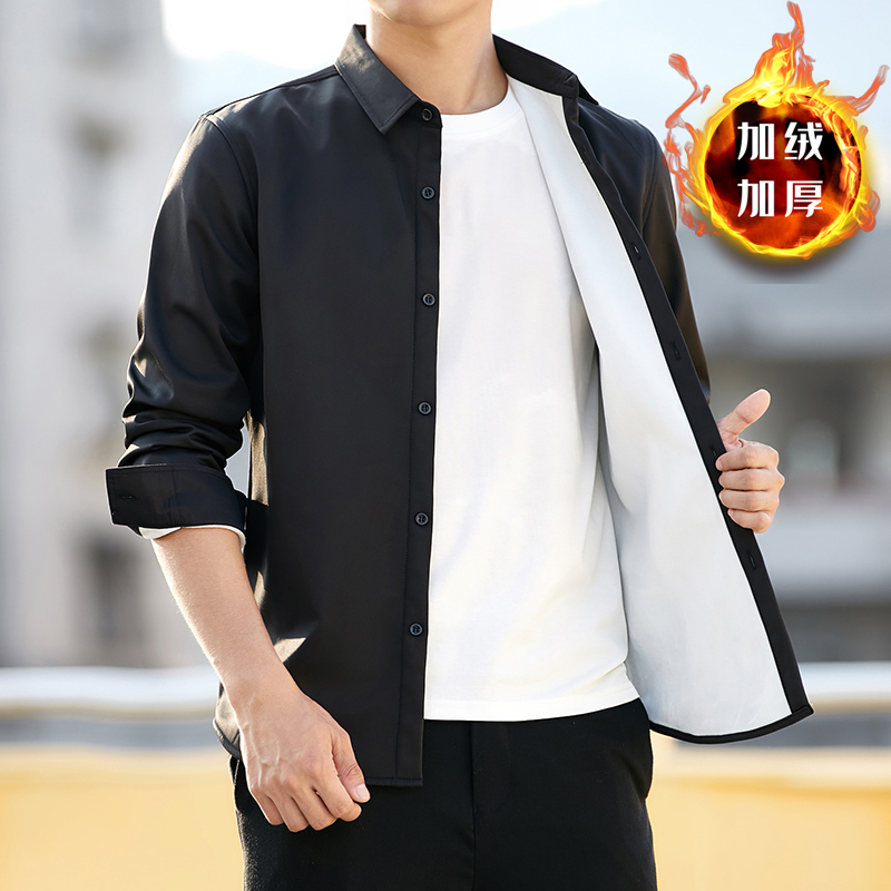 休闲潮流帅气保暖外套青年时尚 加绒加厚冬季 男士 衬衫 纯色衬衣 长袖