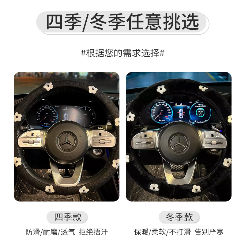 饰防滑把套女 车载保护套花朵装 汽车方向盘套冬季 毛绒加热2025新款