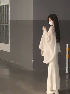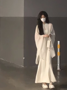 女连衣裙 设计感鱼尾旗袍两件套装 留洋白月光慵懒风披肩开衫 秋冬季