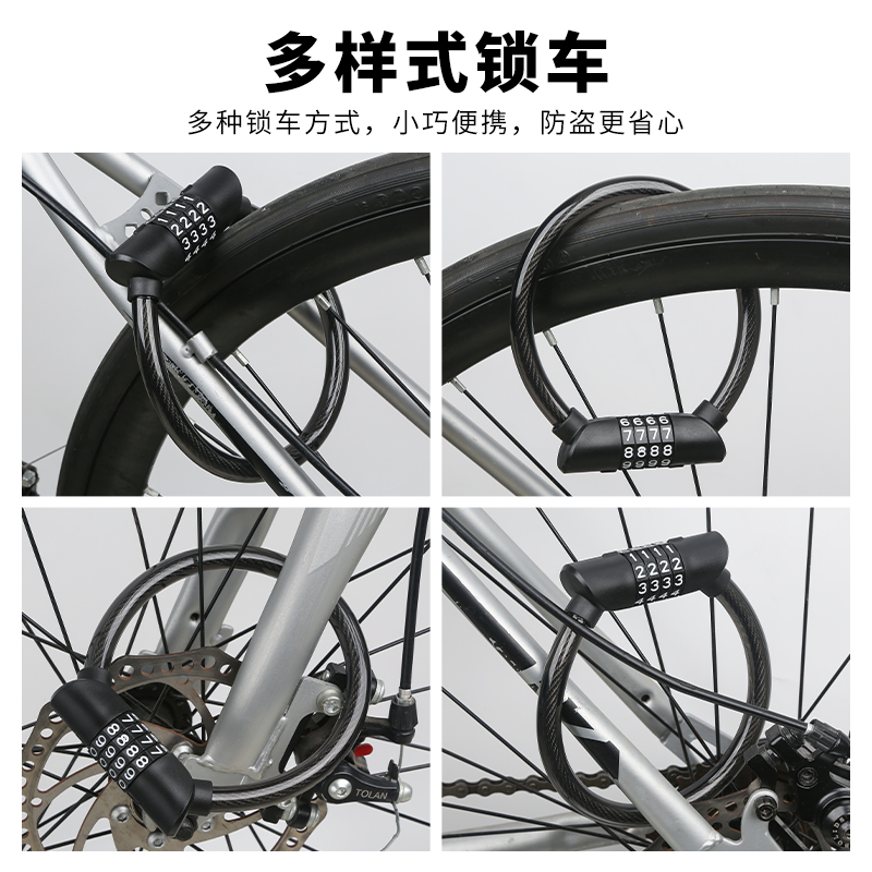 自行车密码 山地车链条电动锁钢缆碟刹锁通用 锁抗剪防盗便携式