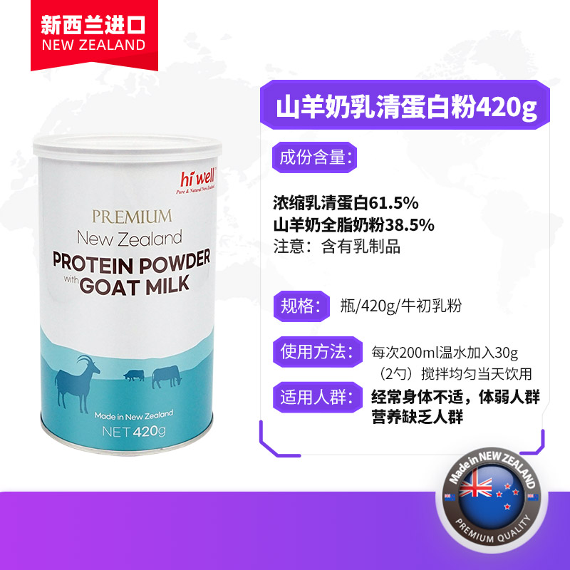 HIWELL新西兰山羊奶乳清蛋白粉蛋白质粉增强抵抗力420g 自营