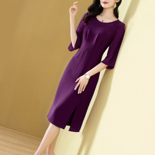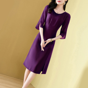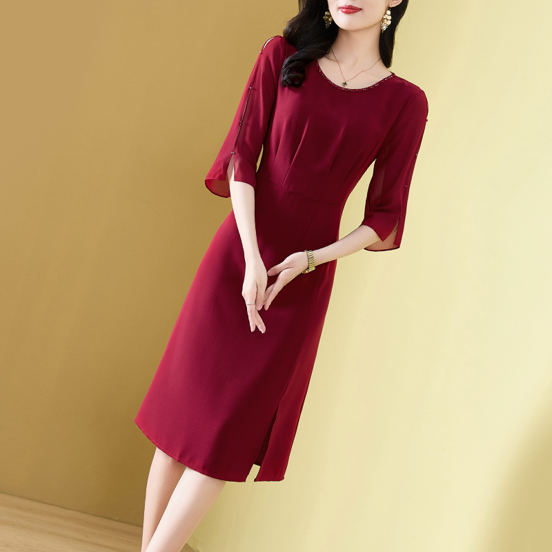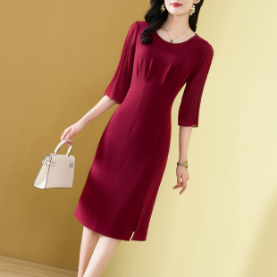 红色礼服连衣裙女2025春秋新款 气质喜婆婆妈妈收腰 高档名媛婚宴装