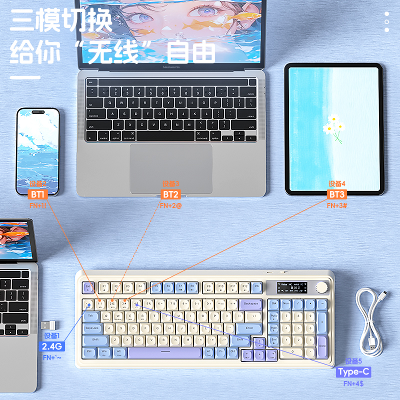 VGN V98proV3极地狐三模热插拔蓝牙GASKET无线客制化游戏机械键盘