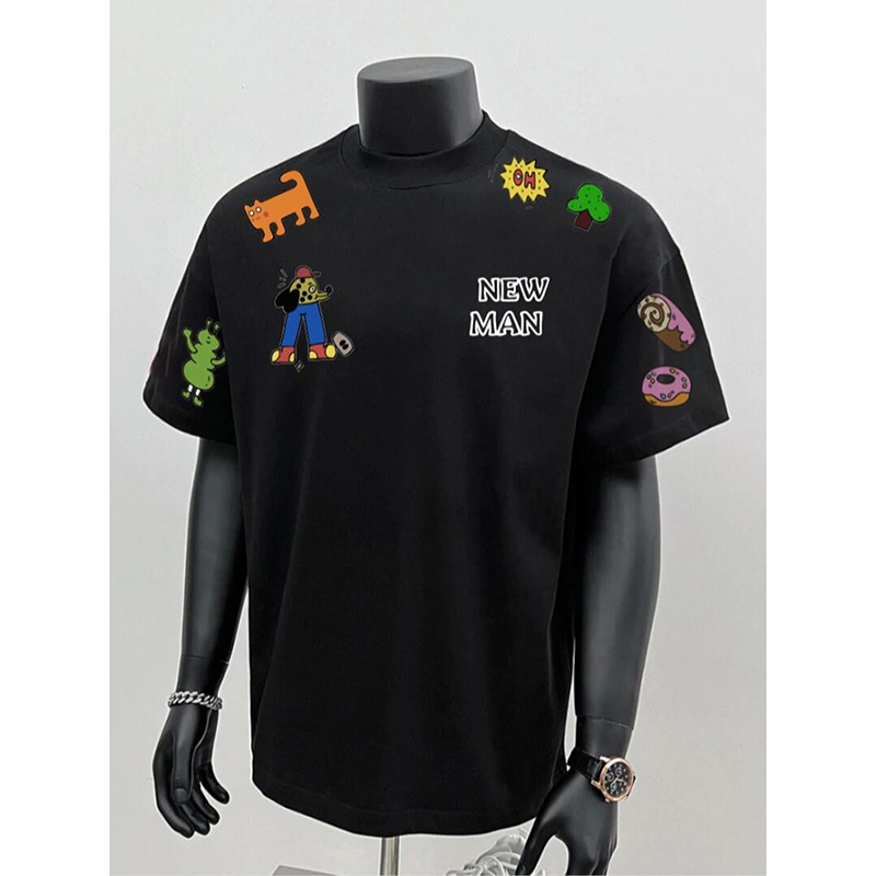 小众设计感情侣半袖 oversize嘻哈滑板短袖 趣味涂鸦t恤男夏季 美式