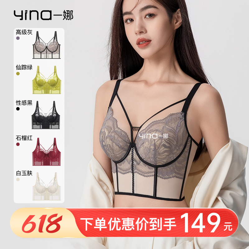 一娜夏季 上托塑身女 鱼骨内衣蕾丝调整型内衣文胸舒适防下垂薄款