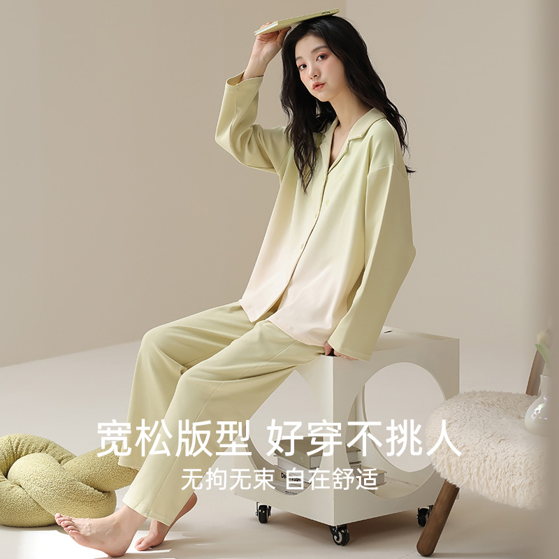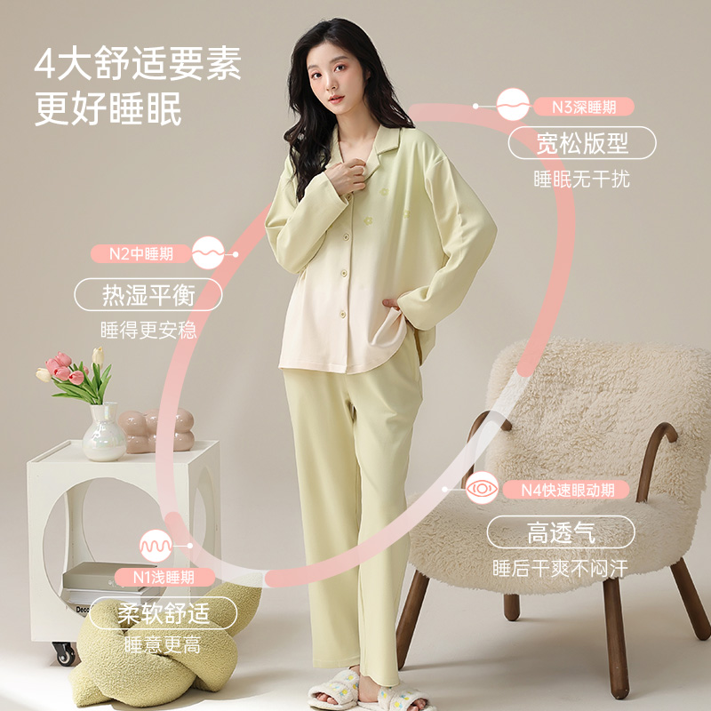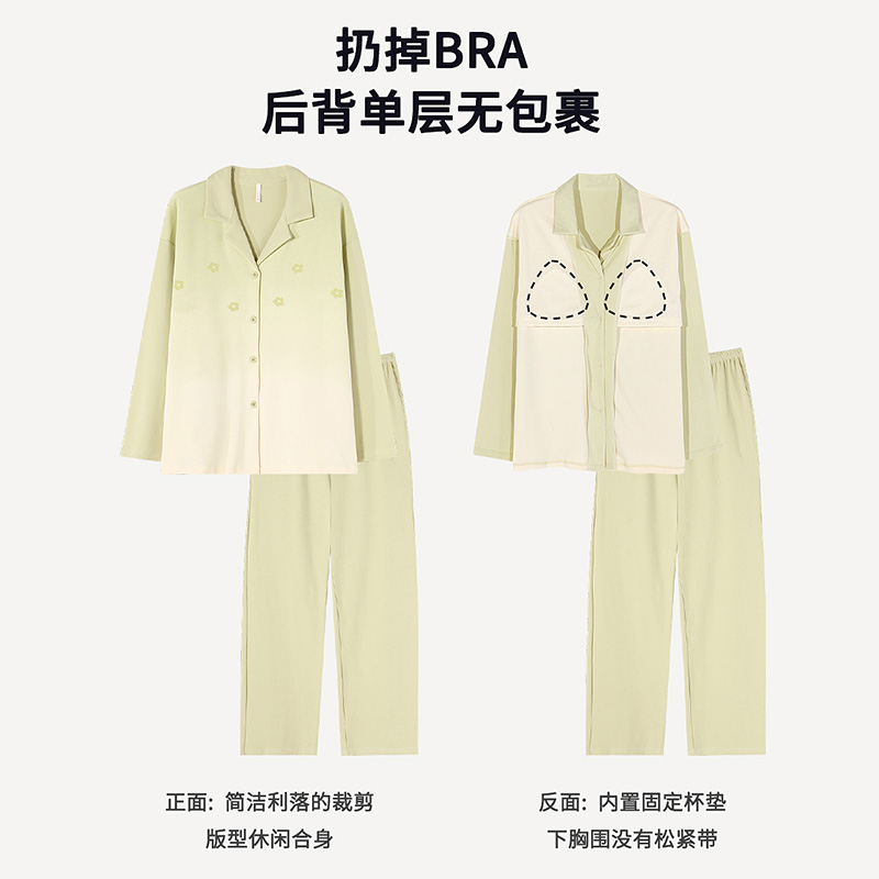 家居服薄款 新一系纯棉带胸垫睡衣女士2025新款 宽松开衫 长袖 春秋季