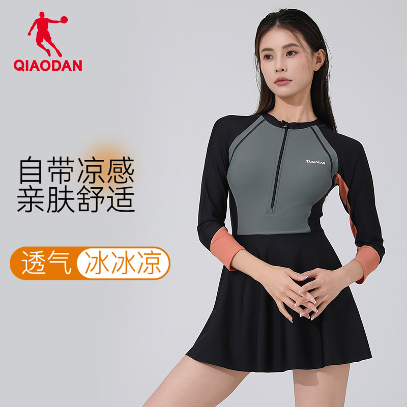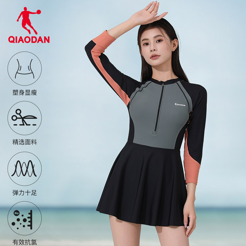 鸿星尔克泳衣女新款 连体保守平角遮肚显瘦初中生专业运动游泳馆装