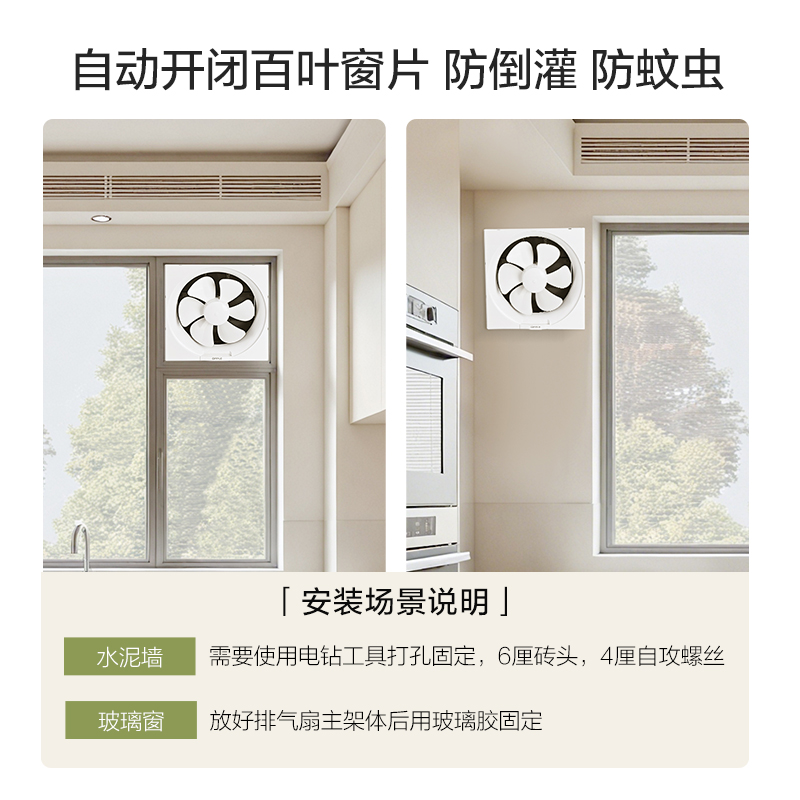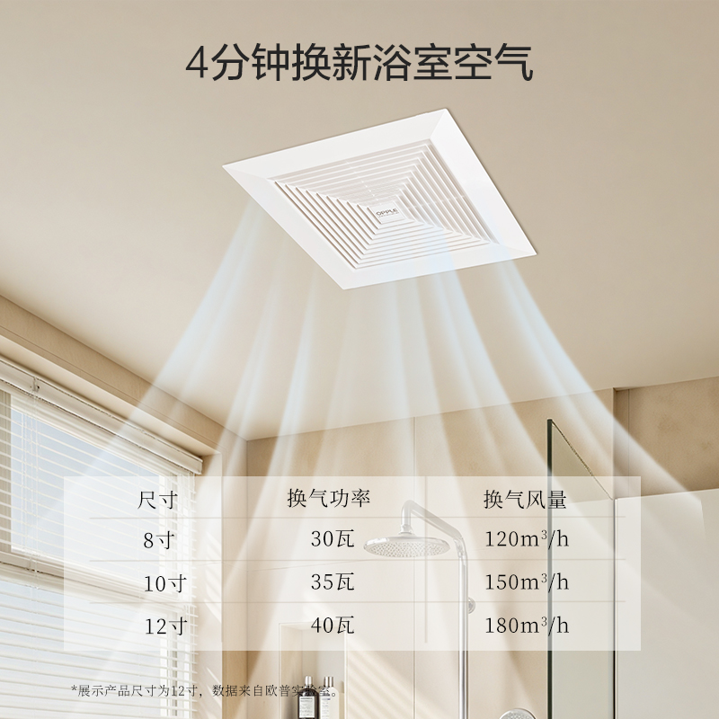 欧普照明普通吊顶换气扇排气卫生间扣板排风厨房浴室吸顶HQS