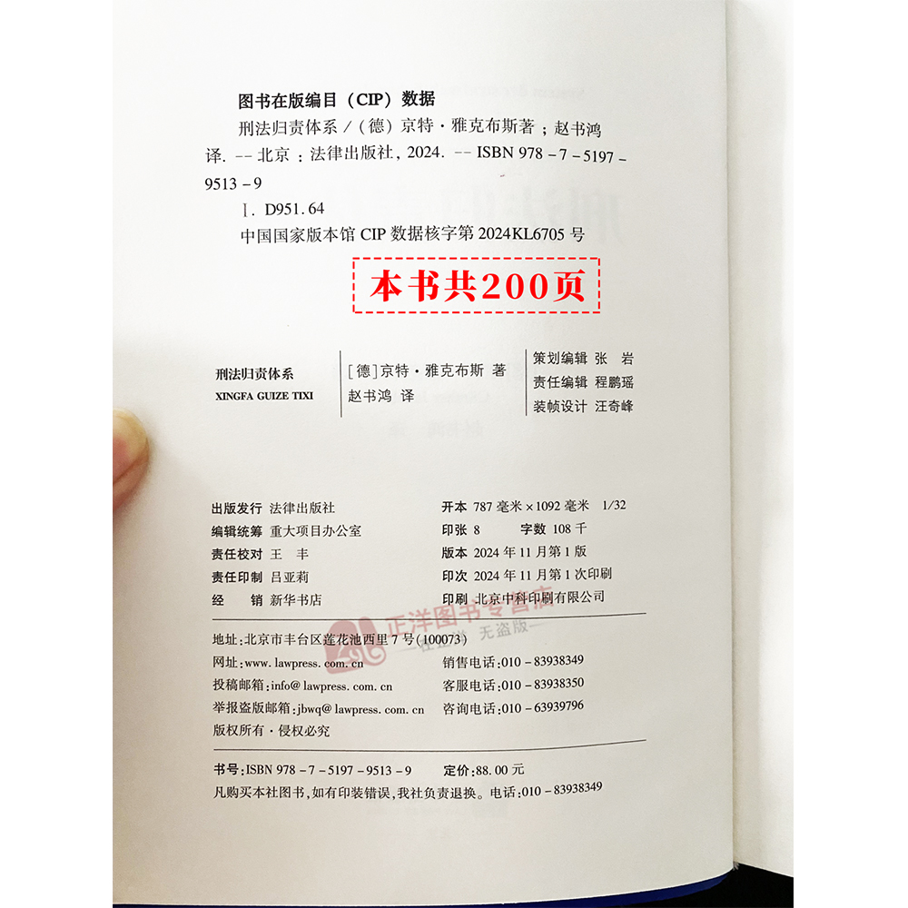 法律出版 正版 京特·雅克布斯 刑法归责体系 社9787519795139 2024新书