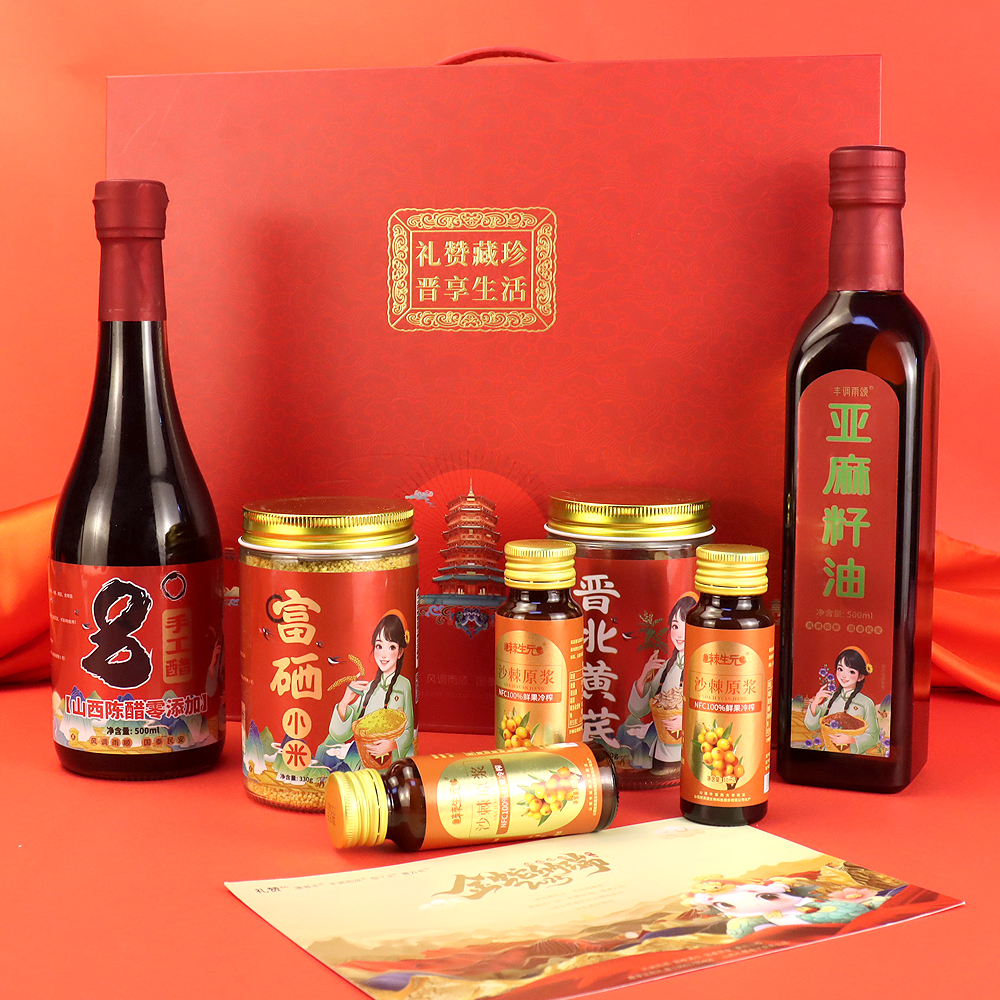 中秋节礼盒山西特产陈醋小米沙棘汁亚麻籽油黄芪送礼物文创伴手礼
