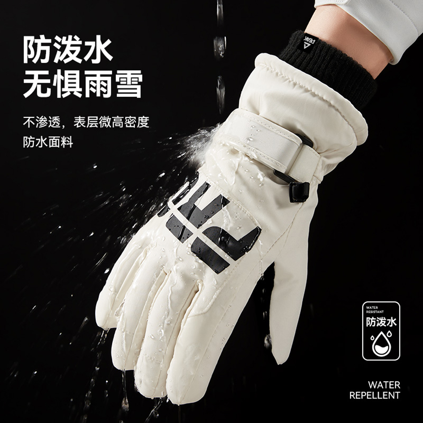 电动车手套冬季 加厚加绒保暖麂皮绒骑行防寒触屏男女士防风手套