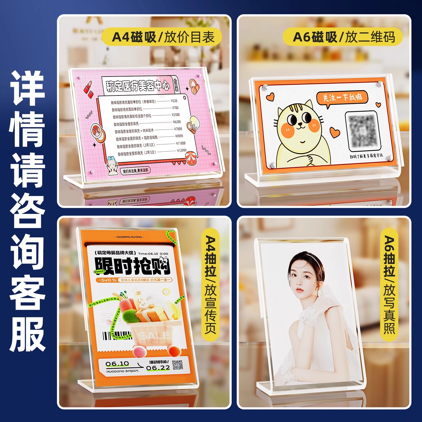 L型亚克力立牌菜单定制台卡桌牌透明展示牌立牌桌面台牌价格表A4餐牌广告牌t价目表餐桌收款 水牌磁吸A5 二维码