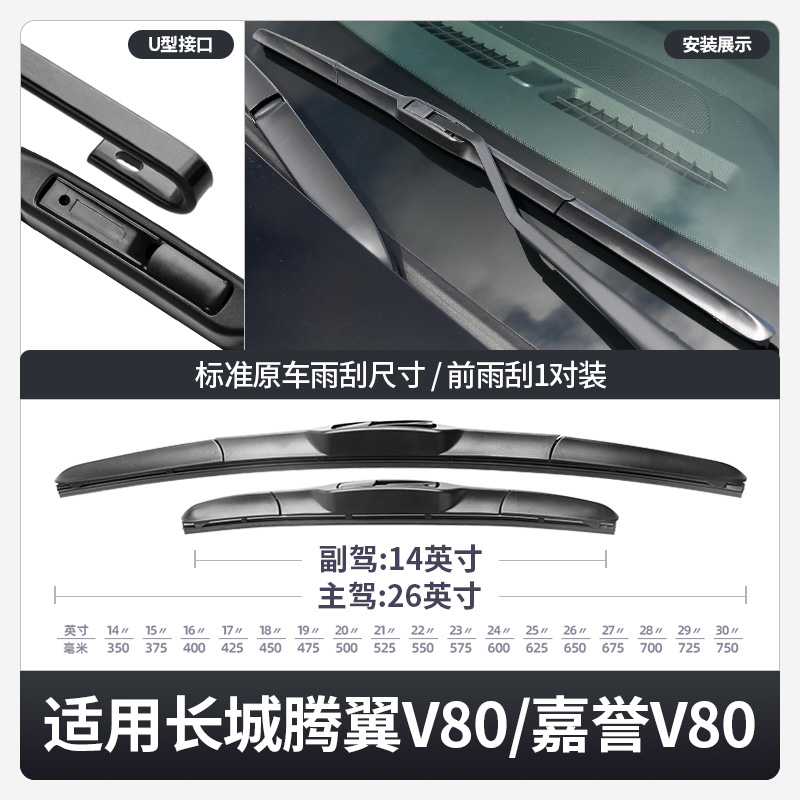 适用长城嘉誉V80雨刮器汽车配件原装 无骨胶条长城腾翼前后雨刷片