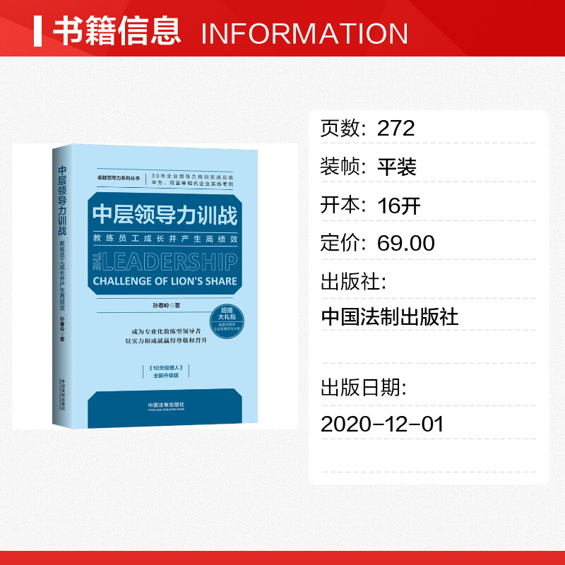 励志 社 全新升级版 中国法制出版 图书籍 新华书店正版 人力资源经管 著 孙春岭 教练员工成长并产生高绩效 中层领导力训战