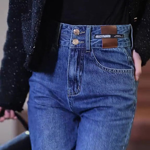 老爹裤 高腰直筒宽松大码 子加绒 女2025年春秋新款 松紧腰哈伦牛仔裤
