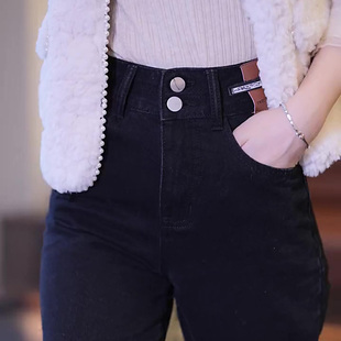 黑色加绒小脚铅笔裤 薄绒显瘦修身 女秋冬2025新款 超高腰紧身牛仔裤