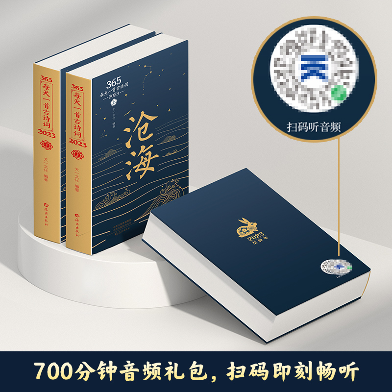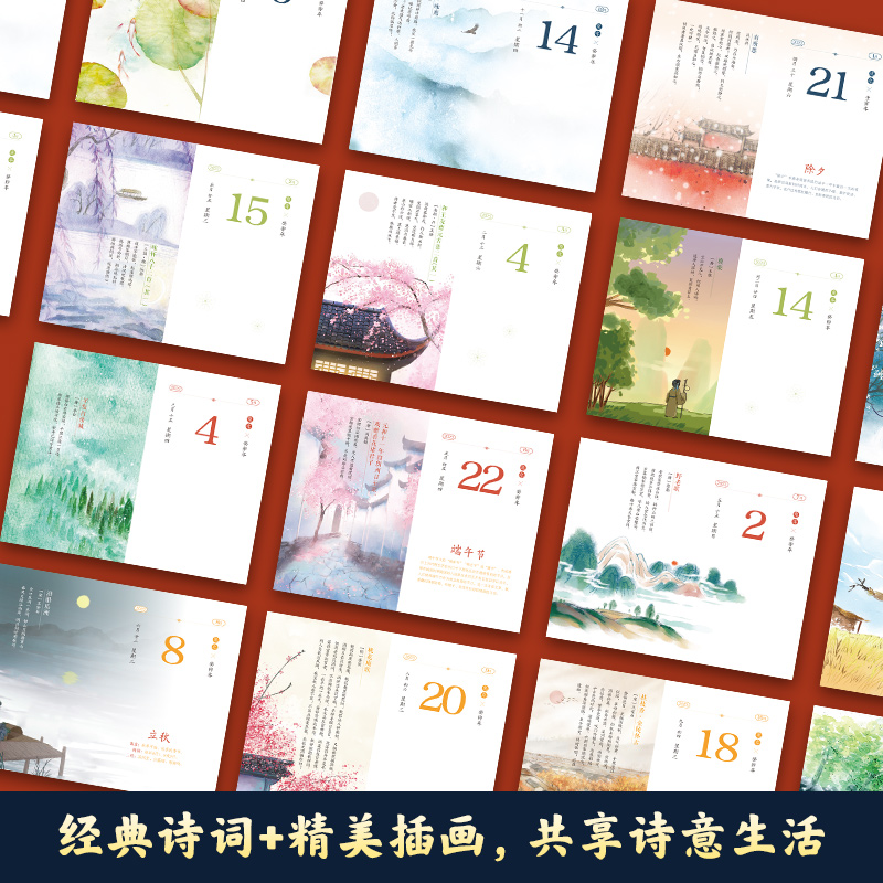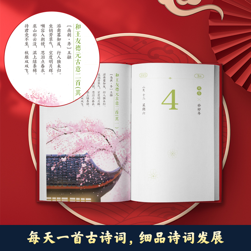 咨询优惠 365每天一首古诗词2023日历星辰沧海日历台历古诗词日历书古风插画中国风创意台历单向历桌面台历兔年日历2023诗词日历