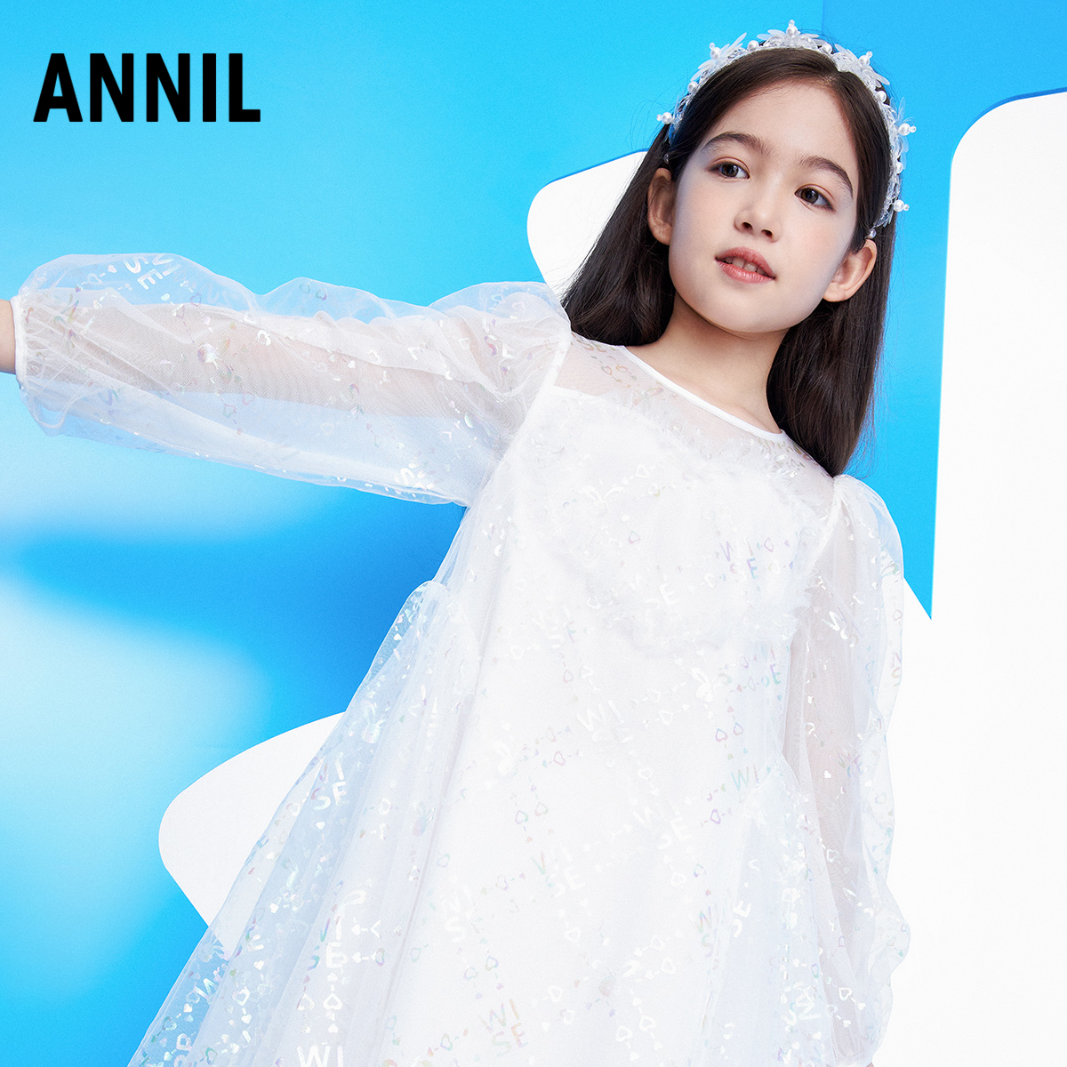 甜美可爱网纱公主裙时尚 安奈儿童装 款 连衣裙春季 中大女童长袖
