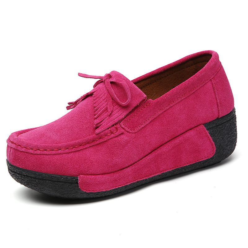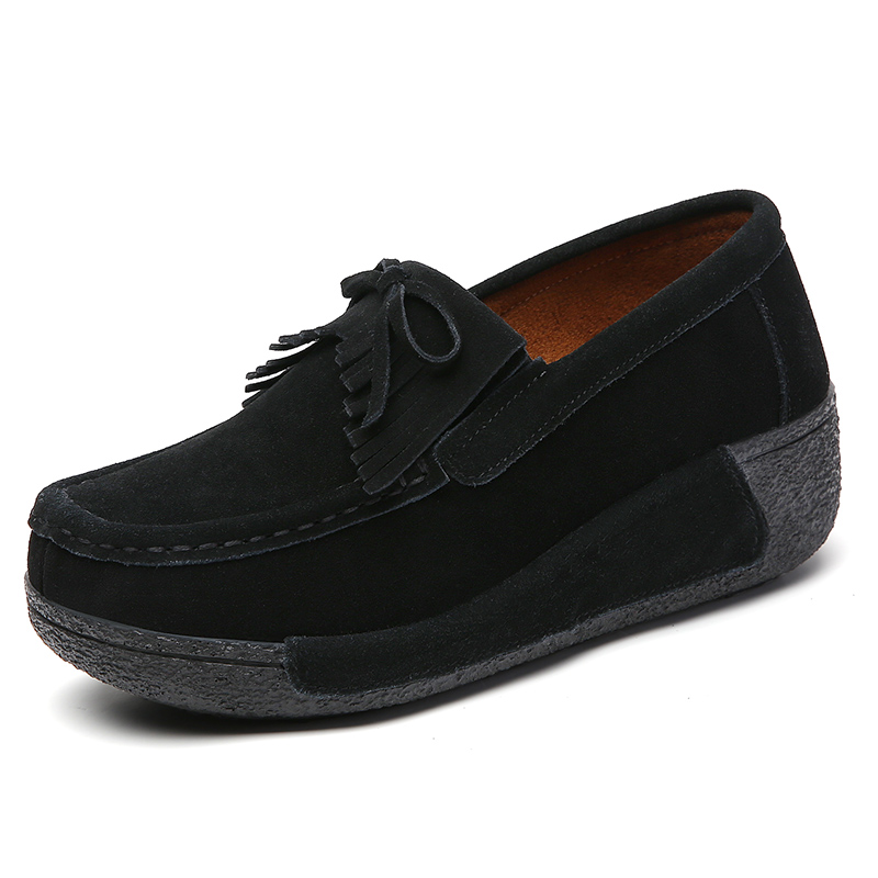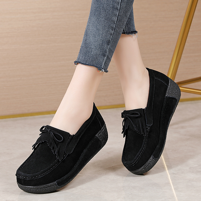 2025春秋圆头女真皮厚底中跟休闲豆豆鞋 妈妈一脚蹬舒适松糕底单鞋