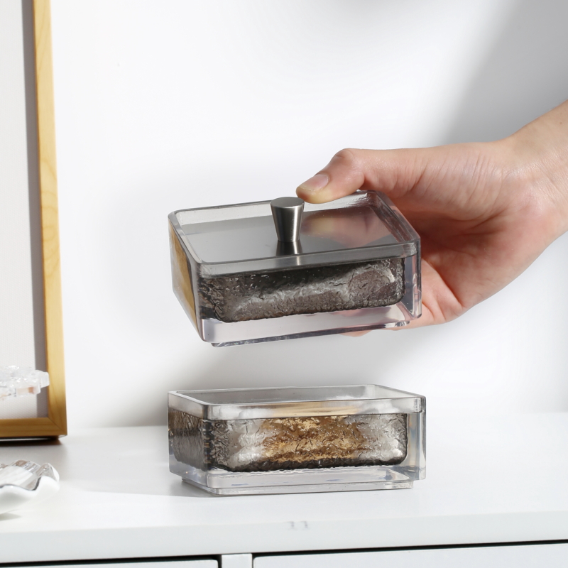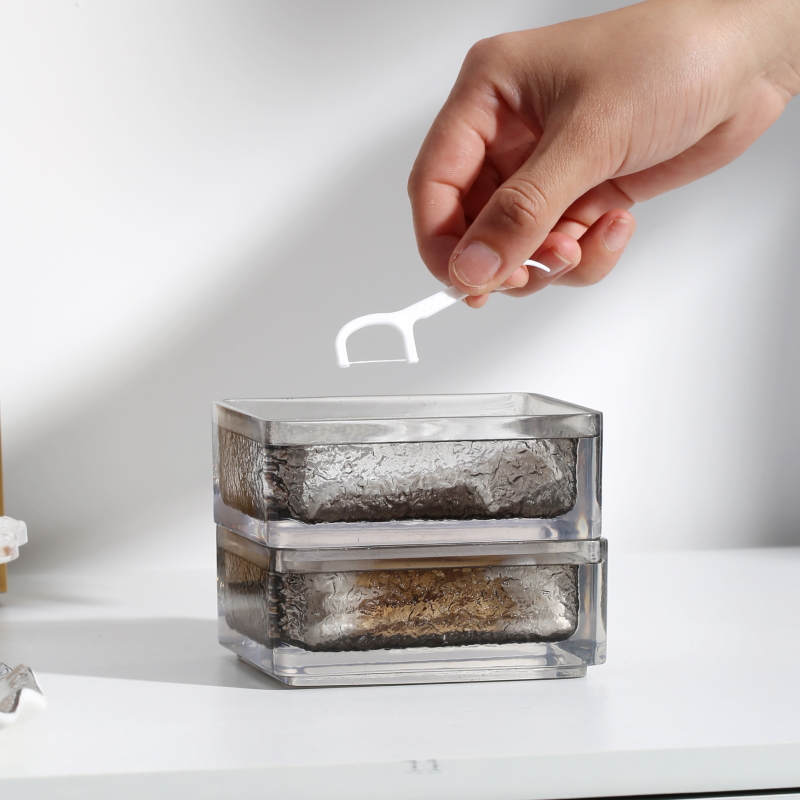 桌面牙线盒轻奢牙签盒双层高档卸妆棉收纳盒带盖家用高颜值棉签盒