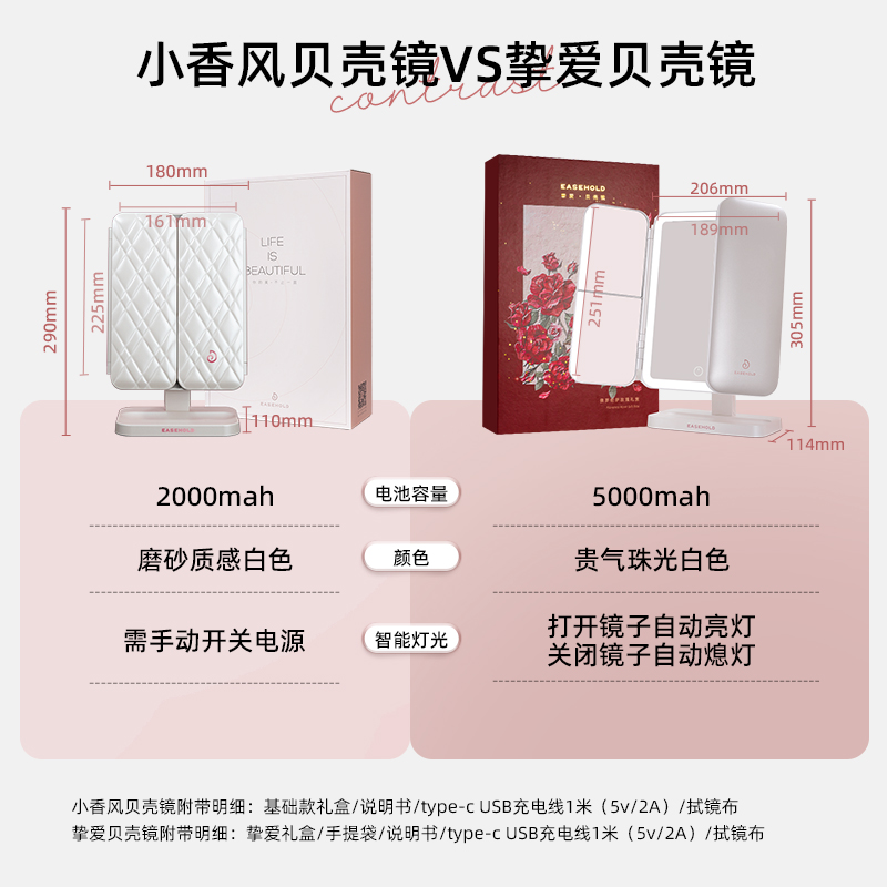 EASEHOLD化妆镜高级台式 桌面led带灯梳妆台镜子结婚礼物送女生