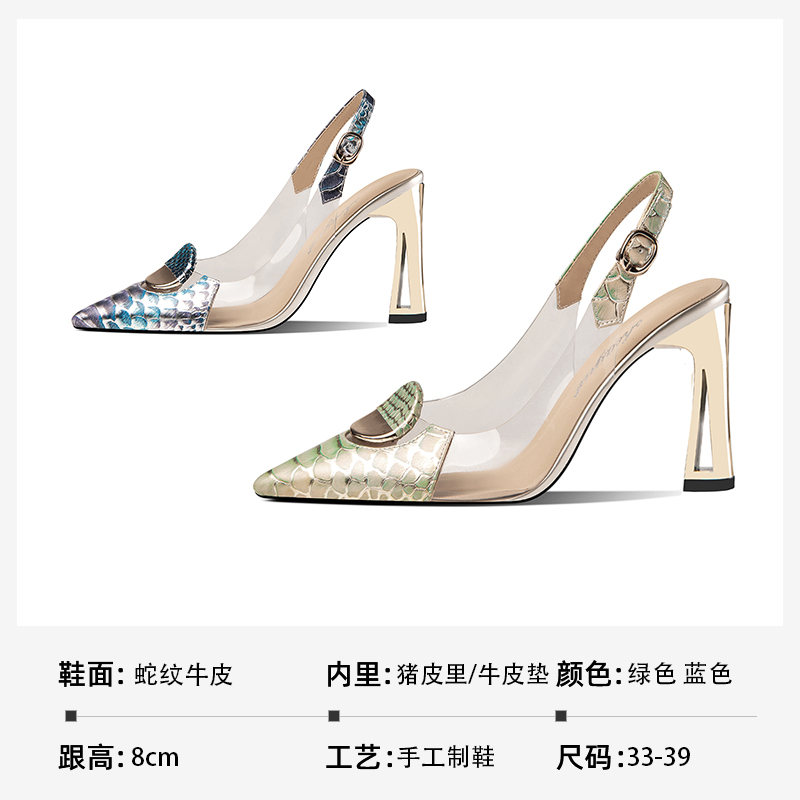 小众后空高跟鞋 女时装 真皮时尚 包头粗跟春夏拼色浅口单鞋 尖头 凉鞋