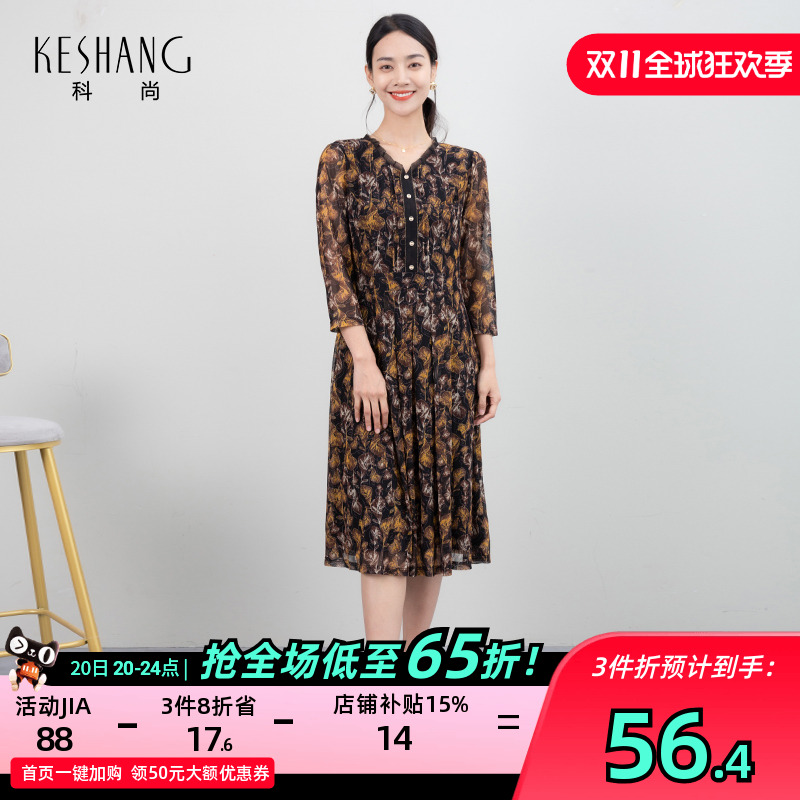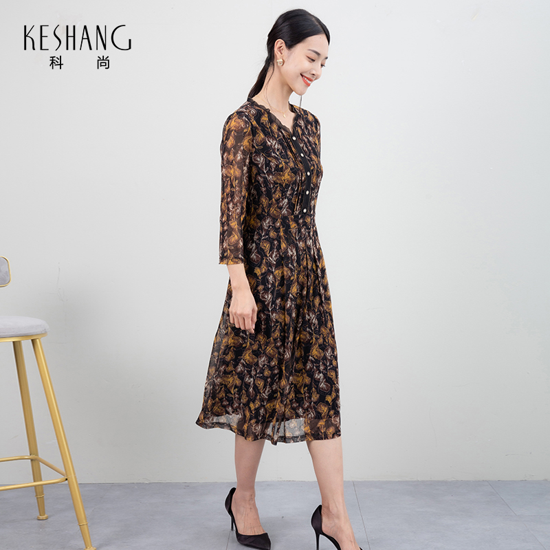 秋季 香妮芬高端圆领拼接设计时尚 减龄气质中年妈妈连衣裙2025新款