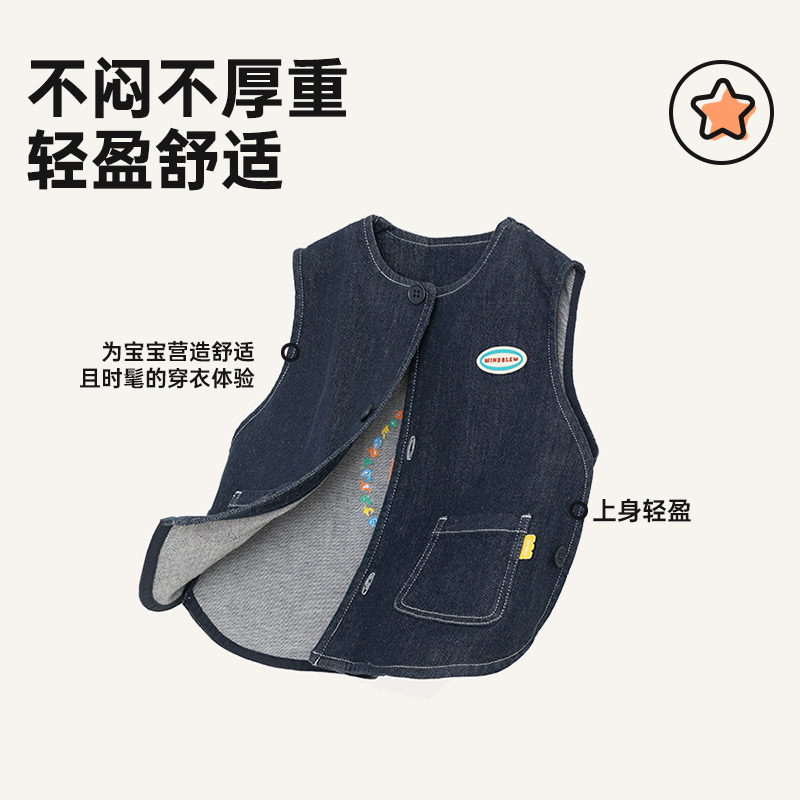 新款 papa爬爬春季 儿童马甲背心男女童软牛仔外搭母女装 亲子装