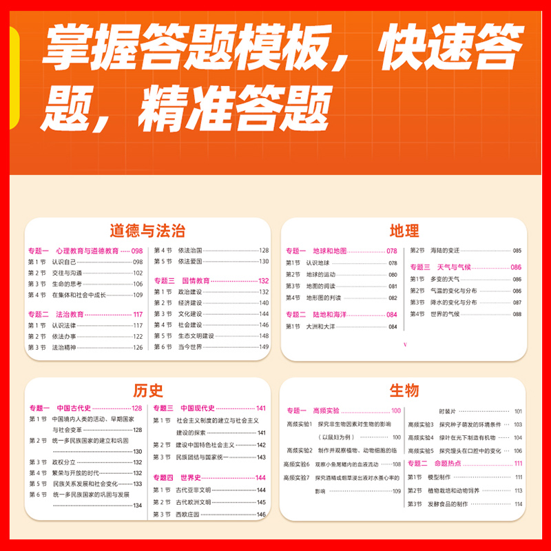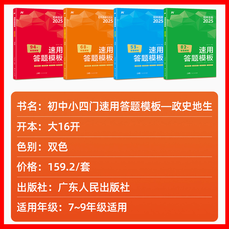 2025初中小四门速用答题模板七八九年级政治历史生物地理通用版 技巧初一二考点速记手册中考总复习资料 基础知识大盘点精准答题公式