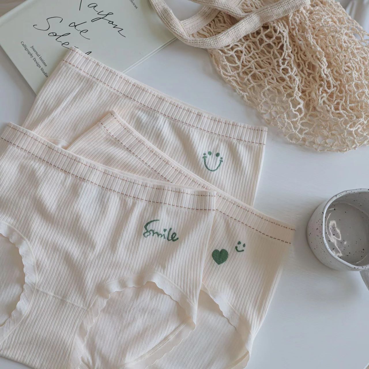 少女短裤 2024秋冬款 奶白笑脸时尚 女全棉裆抗菌无痕中腰秋冬款 内裤