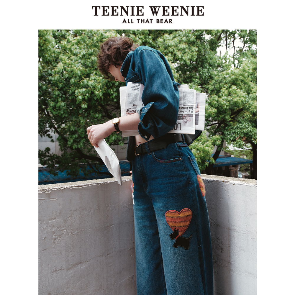 宽松直筒牛仔长裤 TeenieWeenie小熊奥莱2025夏季 莱赛尔混纺