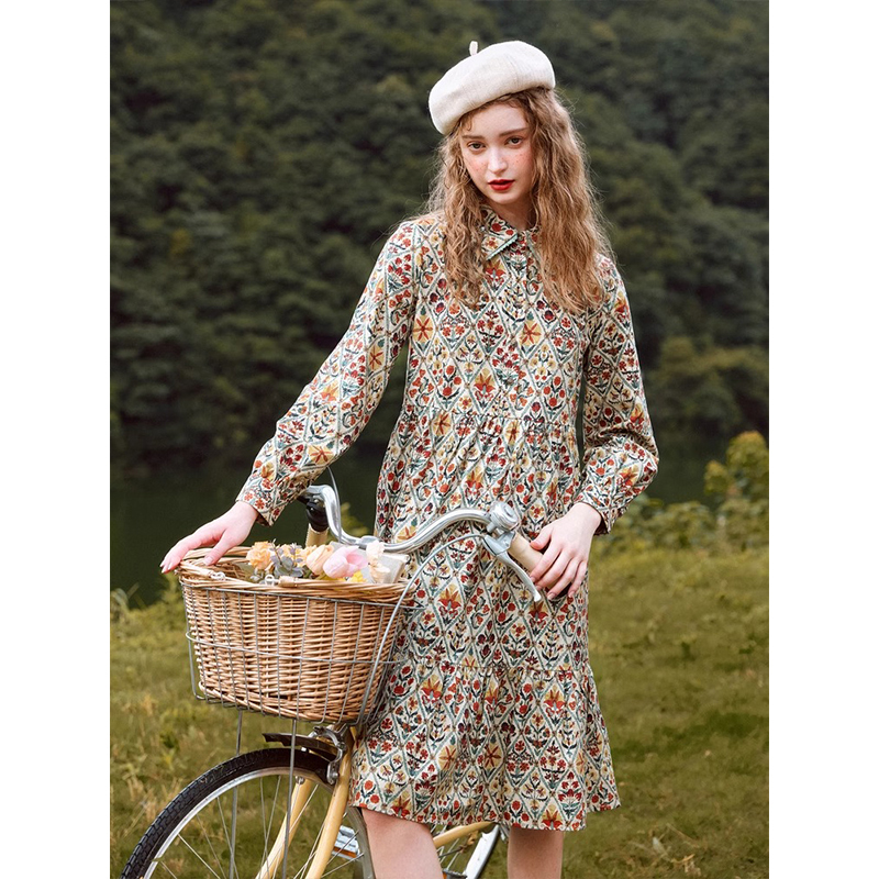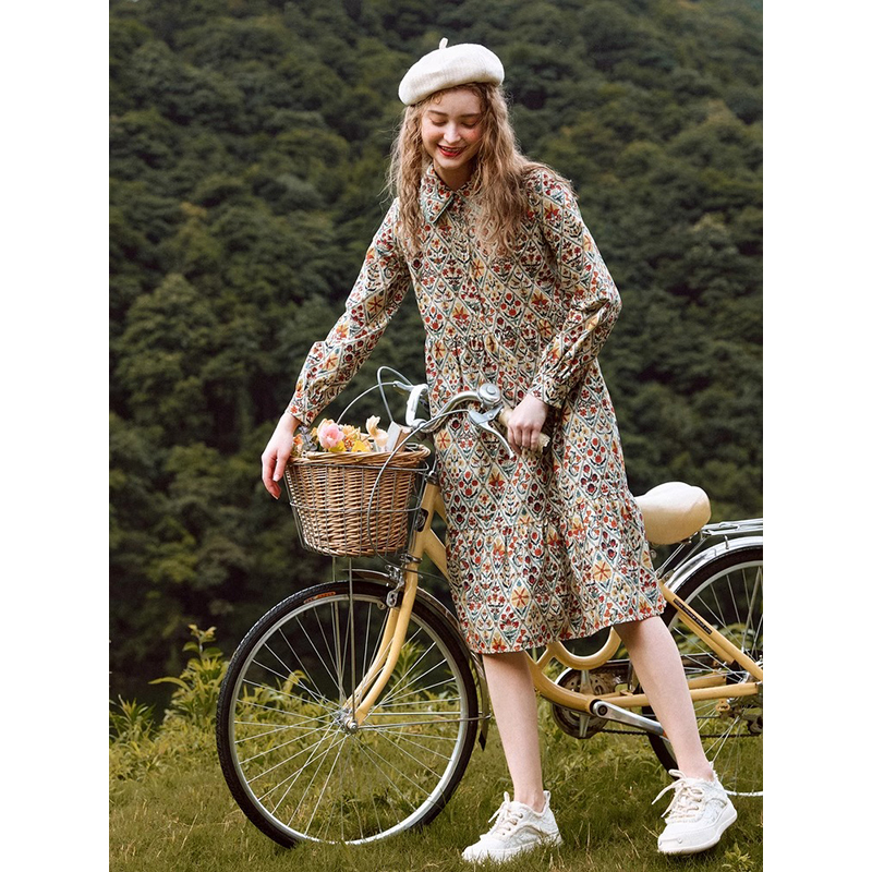 轻国风裙子纯棉碎花短袖 宽松新中式 连衣裙女 新款 晚白2025年夏季