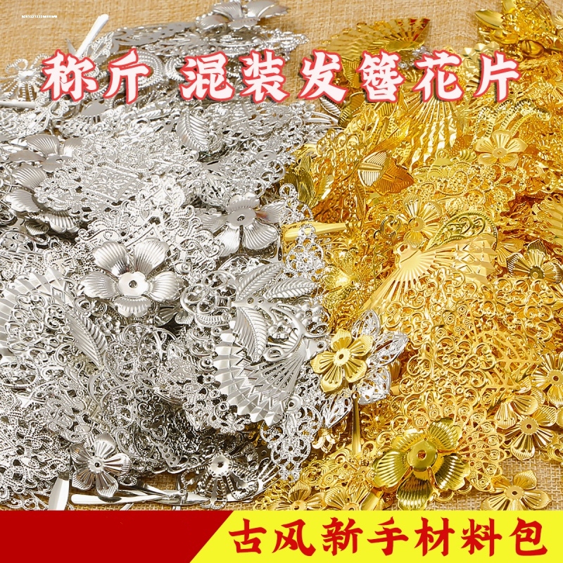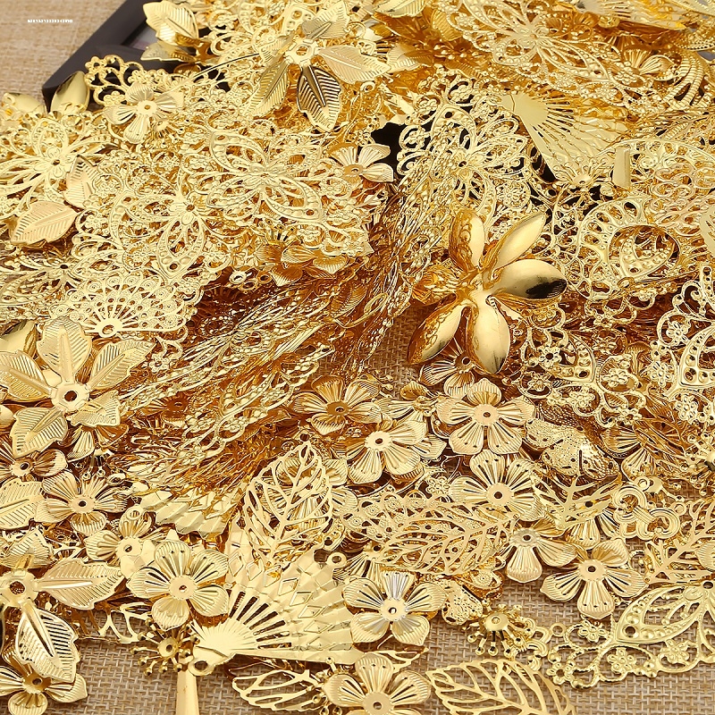 金属花片配件手工团扇diy材料包发簪头饰金银色贴片混款 古风花片