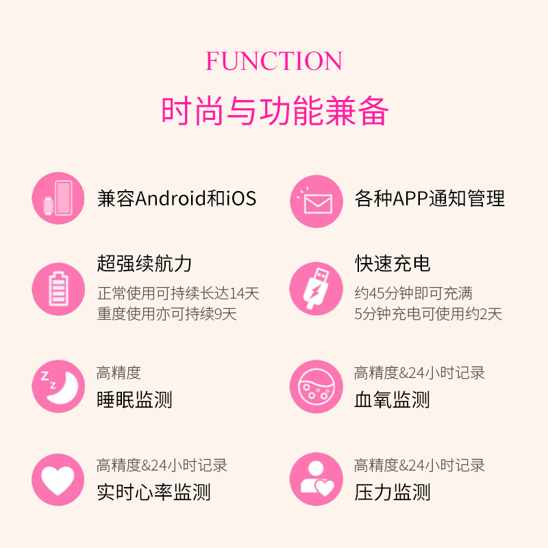 AngelHeart芭比联名款 智能手环日本直邮礼物运动计步闹钟心率监测信息提醒