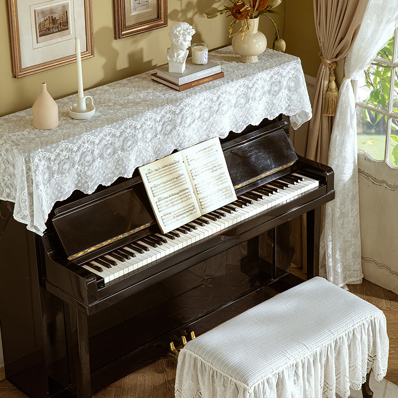 范居态度梦娜白色钢琴罩高档法式 防尘半罩钢琴巾盖布蕾丝盖巾 美式