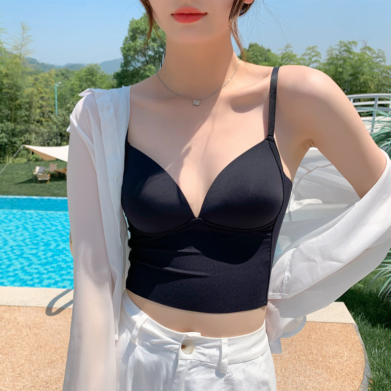 冰丝美背乳胶内衣女夏季 抹胸裹胸上衣一体带胸垫吊带背心 文胸薄款