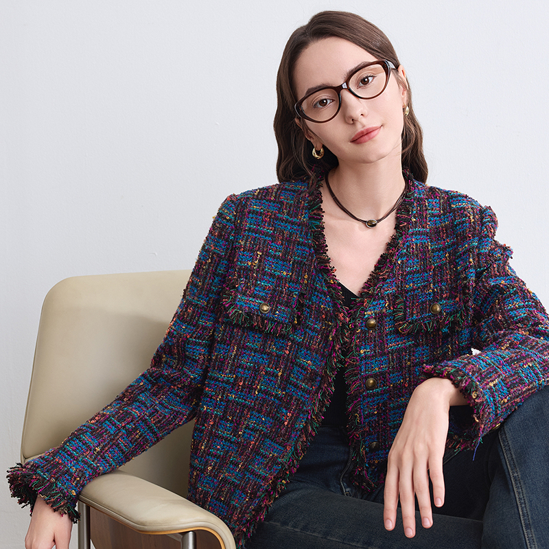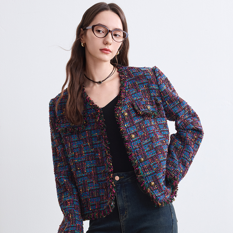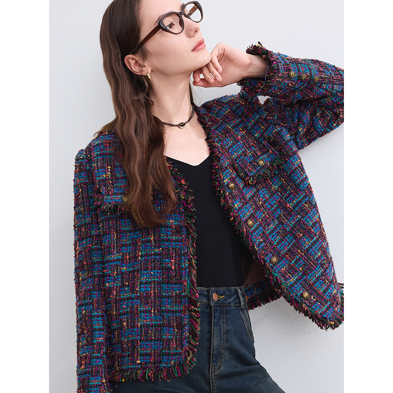 高级感气质小西装 betu百图小香风粗花呢短外套女2025年冬季 新款