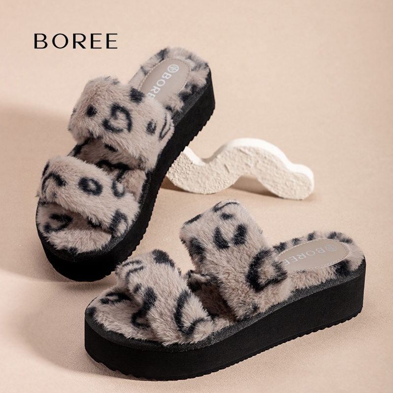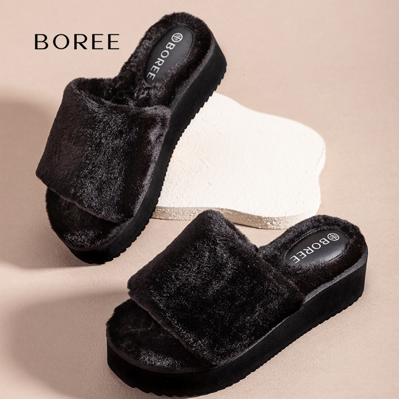 毛毛鞋 外出厚底毛绒茸茸棉拖鞋 女外穿2025夏季 秋时尚 新款 增高爆款