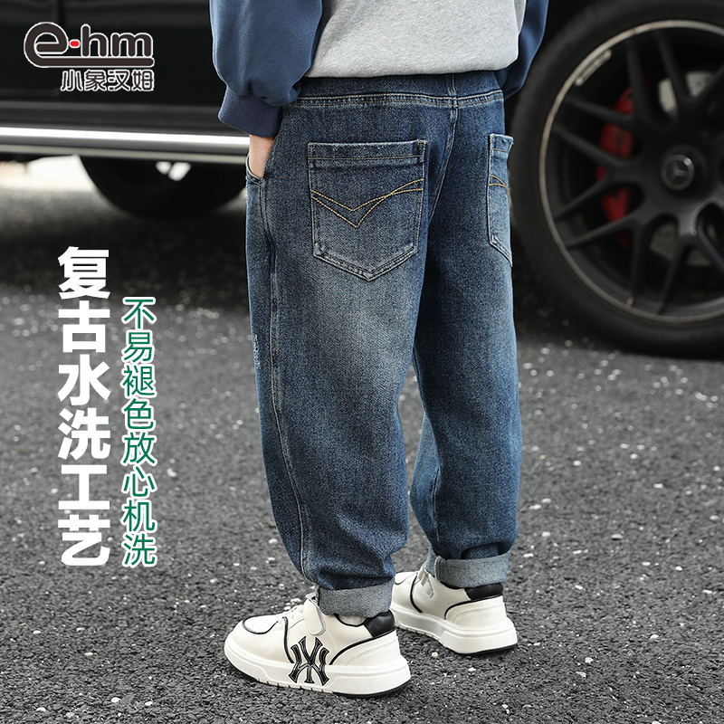 新品 小象汉姆童装 软牛仔2025秋韩版 儿童长裤 舒适 男童秋牛仔裤