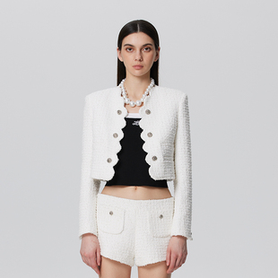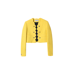 ALESSANDRA黄色粗花呢外套女小香风短款 秋上衣 刘亦菲同款