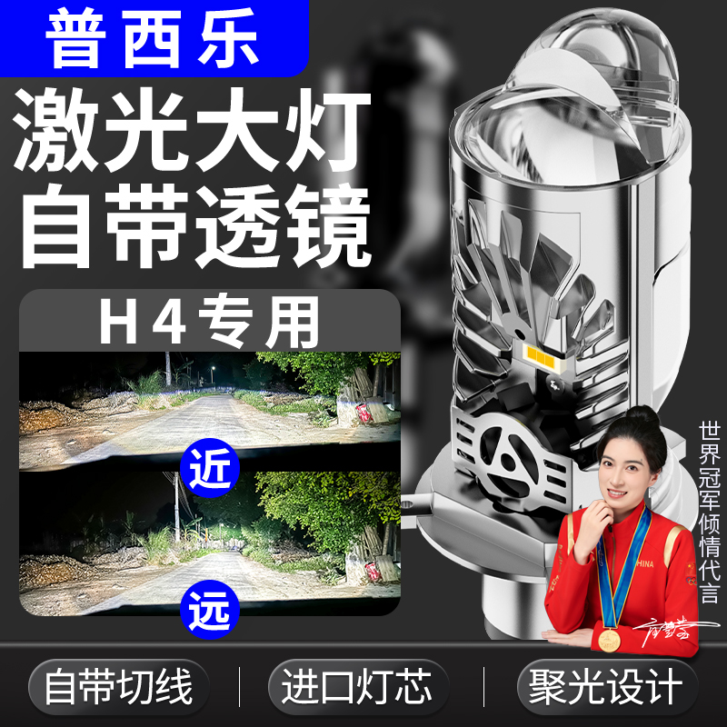 三光透镜激光大灯带双光汽车货车摩托远近一体LED灯泡聚光改装
