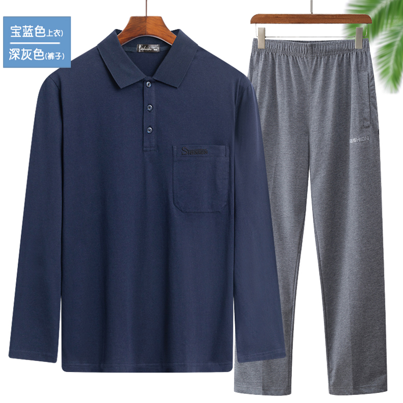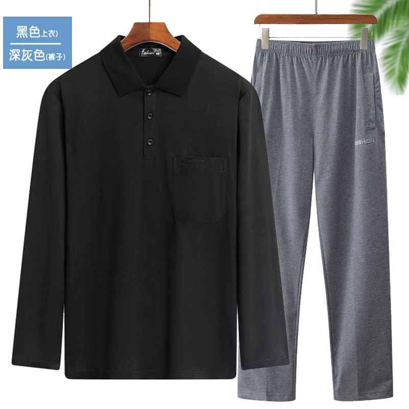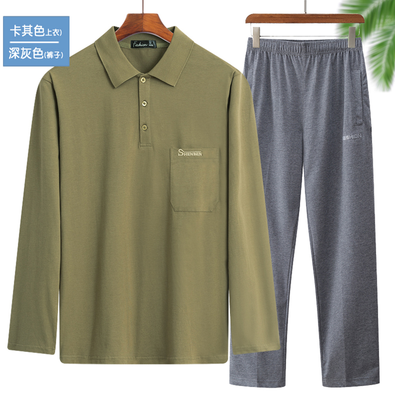 长袖 中老年男士 T恤长裤 宽松休闲套装 夏秋装 家居服爷爷爸爸装 薄款