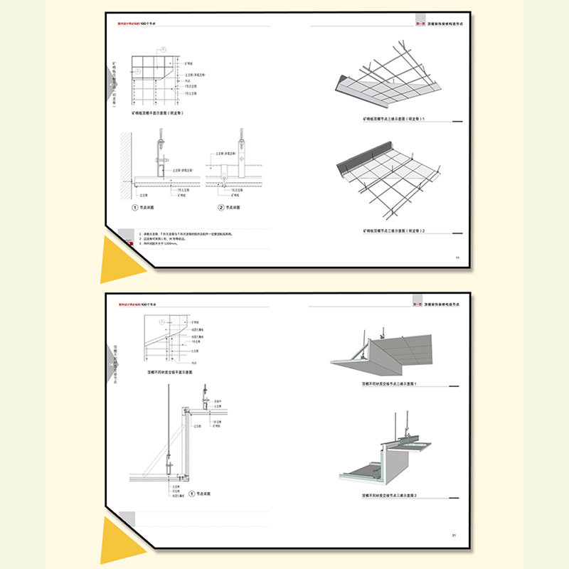 100个节点 施工图施工节点技术设计师 顶棚墙柱地面墙面幕墙门窗楼梯踏步护栏建筑装 修 细部CAD与3D透视图 饰装 室内设计师必知