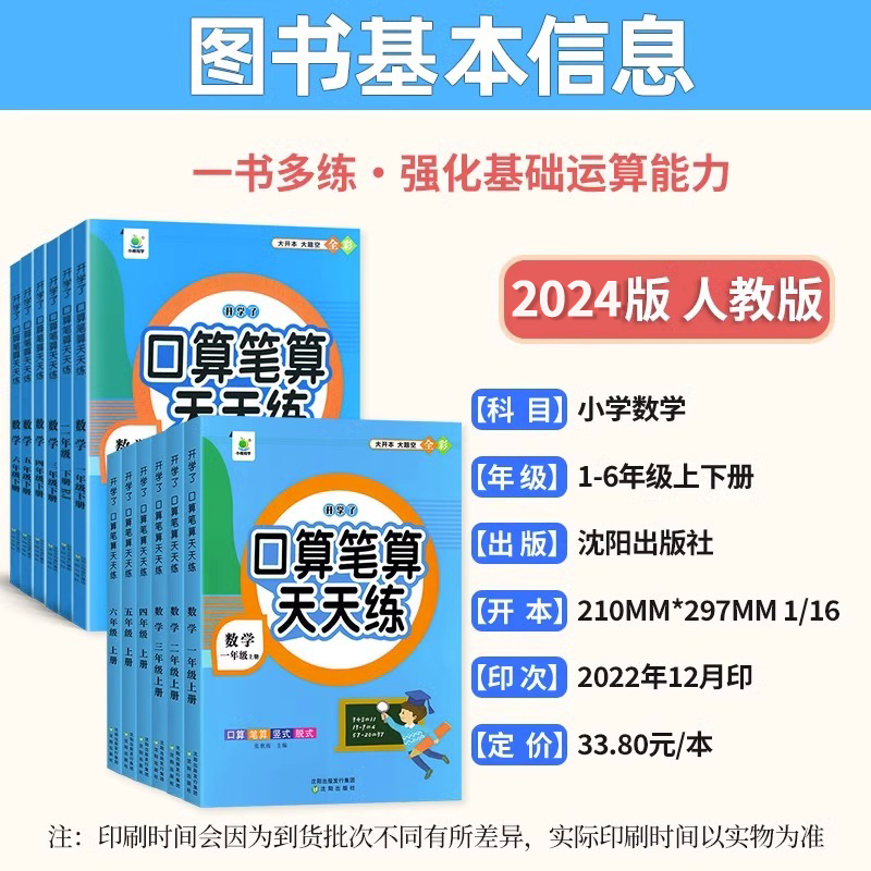 竖式 横式 专项训练同步练习册小学数学思维训练1000心算速算 2025秋口算笔算天天练小橙同学一二三四五六年级下册上人教版 赠视频课