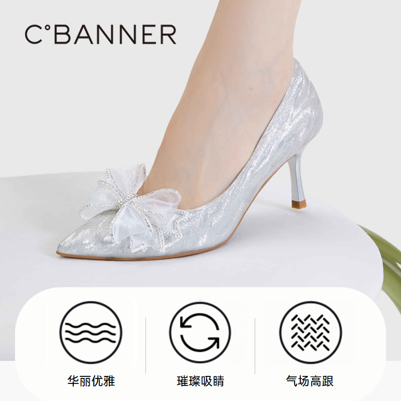 新款 新娘鞋 单鞋 宴会主纱婚鞋 浅口 尖头细跟高跟鞋 千百度女鞋