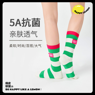 HAPPYLEMON袜子女中筒袜春秋款 袜子 棉袜日系ins潮条纹可爱秋冬款